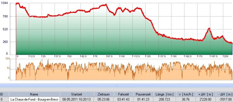 Von hier aus sollte es noch weiter in die Gegend von Raonne - Clermont-Ferrand gehen, wo ich unser erstes Etappenziel geplant hatte. Urs fühlte sich nicht mehr wohl und an eine Weiterfahrt war nicht mehr zu denken. So entschlossen wir uns ein Hotel zu suchen und anstatt noch ca. 100 Kilometer zu fahren genossen wir das kühle Bier auf der Terrasse des Hotel Ibis.