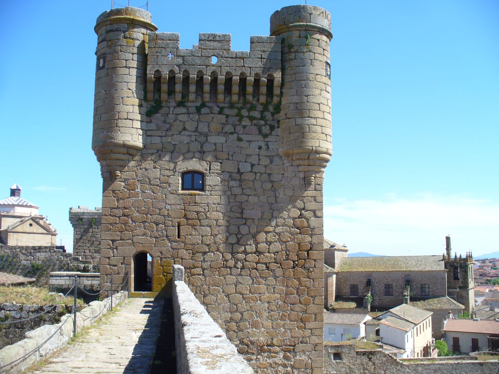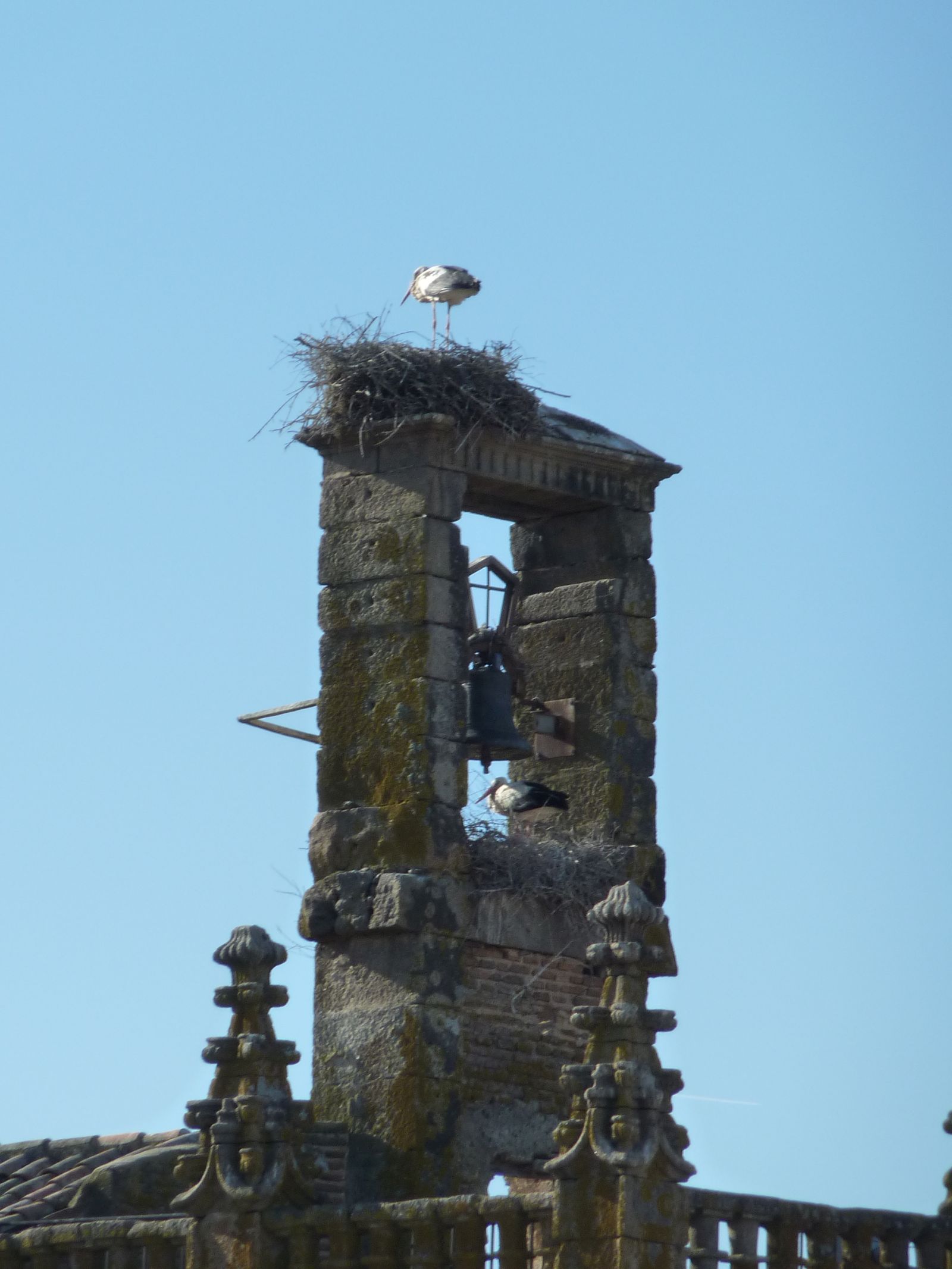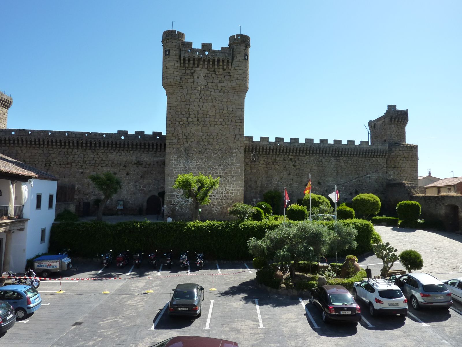 Ich studierte also das Navi und die Karten und sah, dass die Naturstrasse ca. zwei Kilometer weiter auf eine normale Strasse traf. Ich erklärte Stefan wo er durchfahren musste und wir uns dann wieder treffen sollten. Er fuhr also zurück und Albert und ich weiter, bis zu der abgemachten Kreuzung. Hier warteten wir recht lange und niemand kam. So entschlossen wir uns zurückzufahren : Albert die Naturstrasse und ich die Strasse auf welche die Andern zu uns kommen sollten. Den Albert traf ich dann wieder da wo das 'Bachbett' begann aber von den Andern war nichts zu sehen. Also zurück bis zum Spielplatz, aber auch da nichts. Wir fuhren dann wieder zum abgemachten Treffpunkt, da erhielt Albert von Edith ein SMS, welche besagte dass sie auf einer andern Route nach Oropesa fuhren. Also fuhren wir zu zweit südwärts durch die Ausläufer der Sierra de Gredos auf die Autobahn nach Oropesa wo wir doch trocken ankamen und uns der  Parador von Oropesa für die nächsten zwei Nächte als Gäste erwartete.