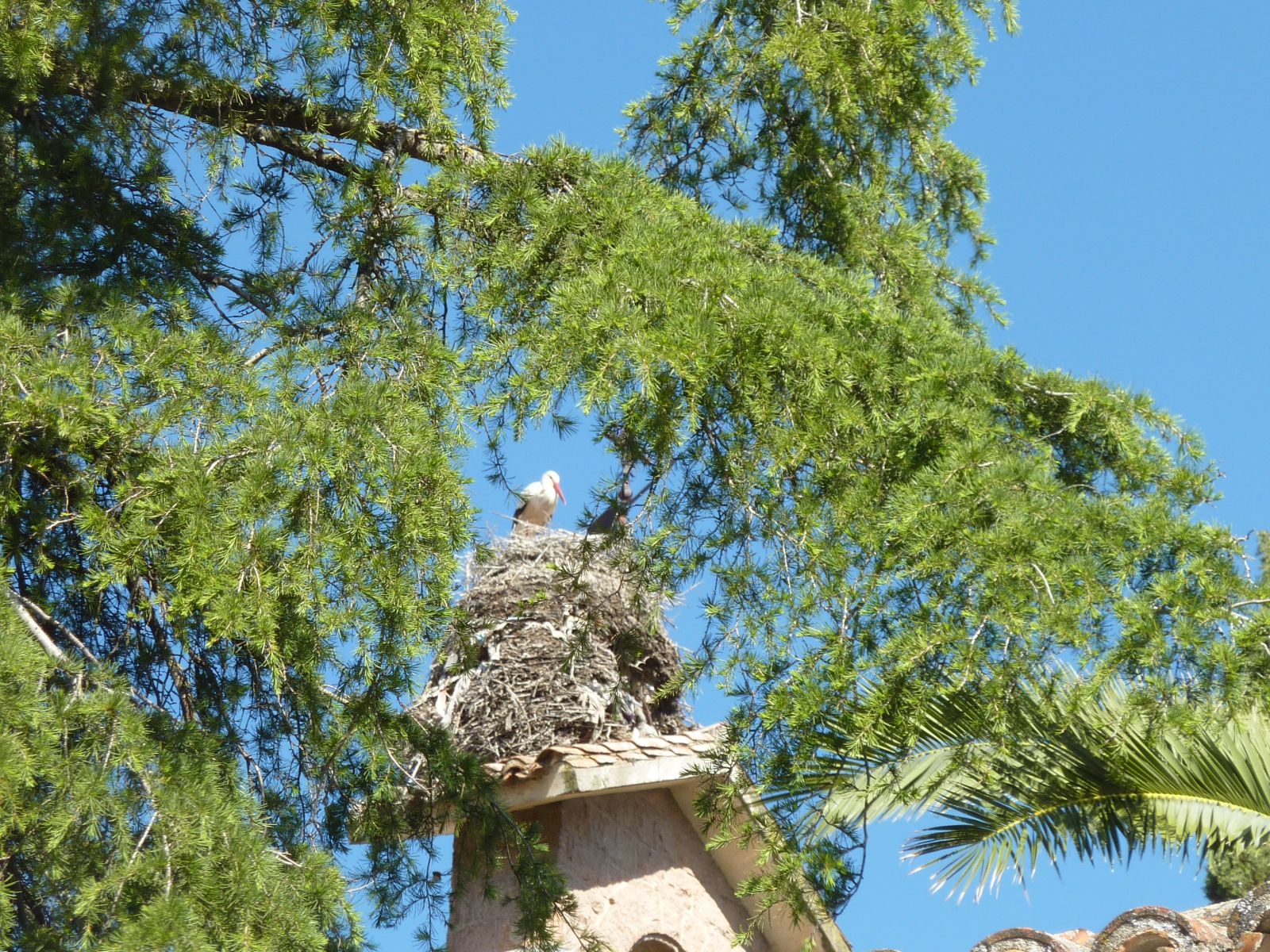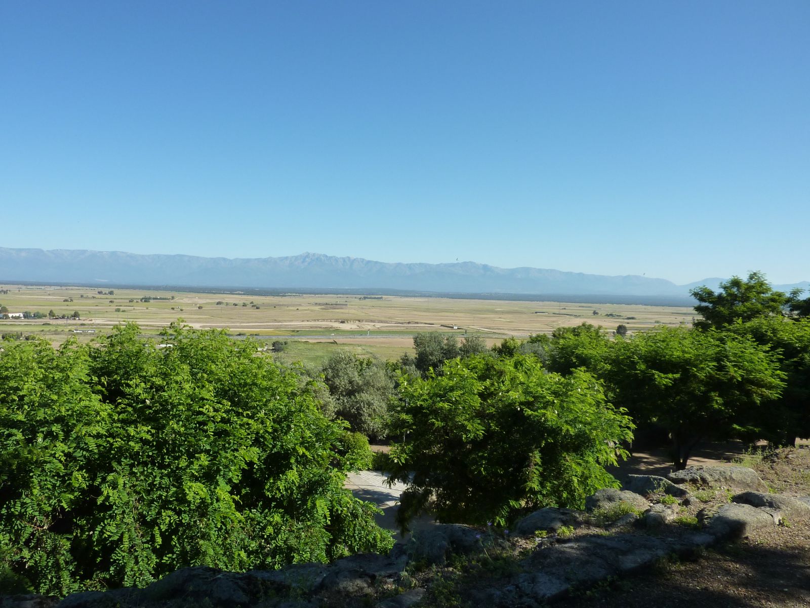 Am Embalsa de San Juan wollte ich eigentlich unseren Mittagsrast machen, doch ausser einer Staumauer war nicht viel zu sehen und wir fuhren weiter Richtung Sierra de Gredos. Auf dem Weg die Sierra von der Nordseite her zu befahren begann es leicht zu regnen und als wir etwas weiter sehen konnten waren die Berge total voller schwarzer Wolken. Zum Glück hatte es da bald einen Kreisverkehr, so dass wir 360 Grad wenden konnten und zurück nach San Martin fuhren. Wir blieben also auf der Südseite der Sierra wo das Wetter noch trocken aussah und nahmen dann unser Mittagessen auf einem Spielplatz mit Tisch und Bänken ein.