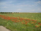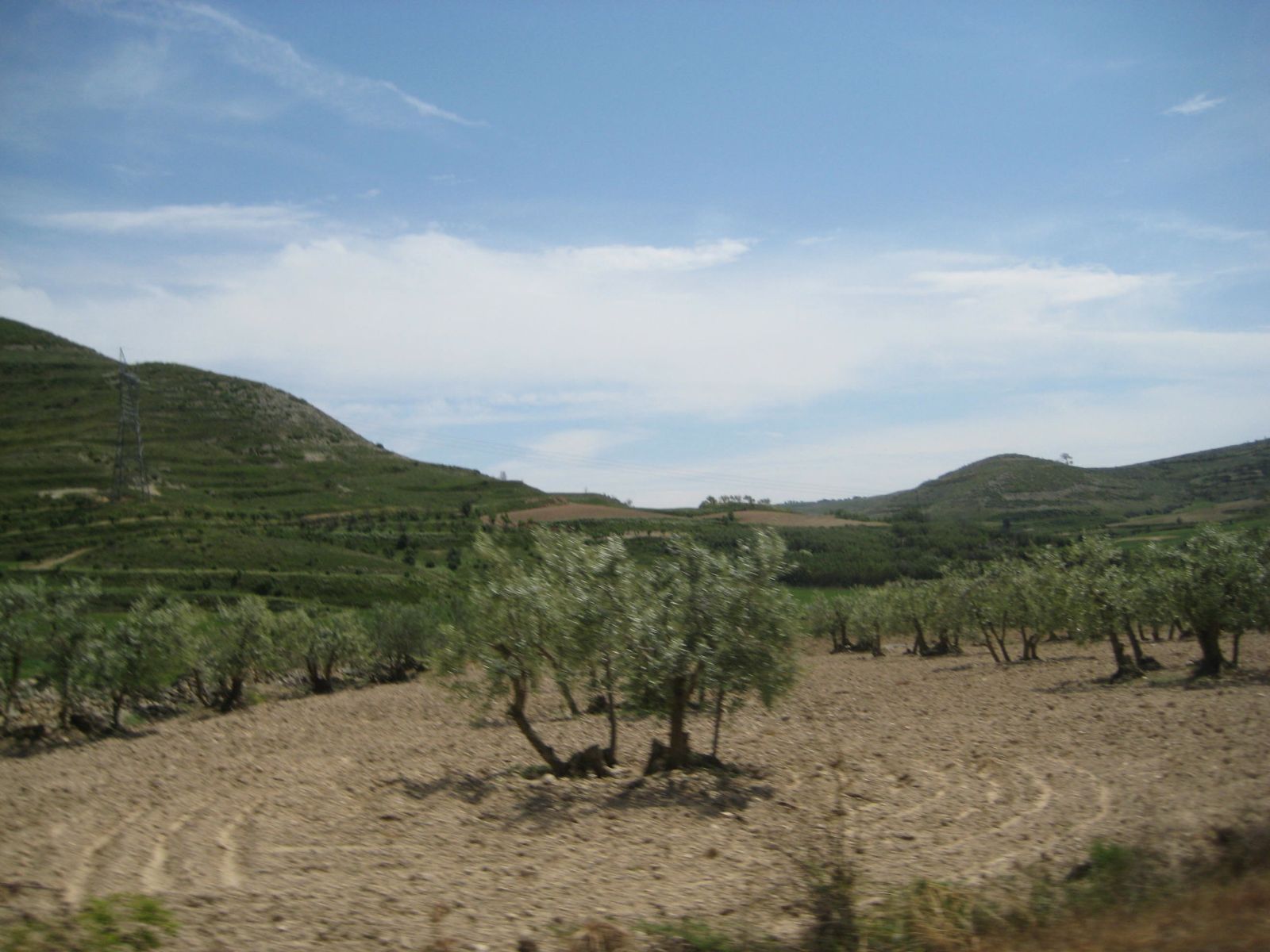 Es war gerade um 9 Uhr als ich einen Carrefour erblickte und ich dachte beim heutigen schönen warmen Wetter können wir zum Mittag Picknicken. So hielten wir da an und stellten fest, dass dieser erst um 9:30 öffnet. Zum Glück hatte das Kaffee aber schon offen, so dass wir gemütlich einen Kaffe oder einen zumo de naranja trinken konnten. Schon bald konnten wir unser Mittagessen einkaufen und die fahrt fortsetzen. Durch die Ebenen zwischen Lleida und Zaragossa hatte es doch richtige 'Rumpelpisten' auf welchen das Fahren keine Freude machte, doch schon bald besserten sich die Strassen und die Landschaft hatte doch sehr viel zu bieten. Am Strassenrand wuchs der wilde Mohn in saftigem rot und die Olivenbäume schimmerten silbern.