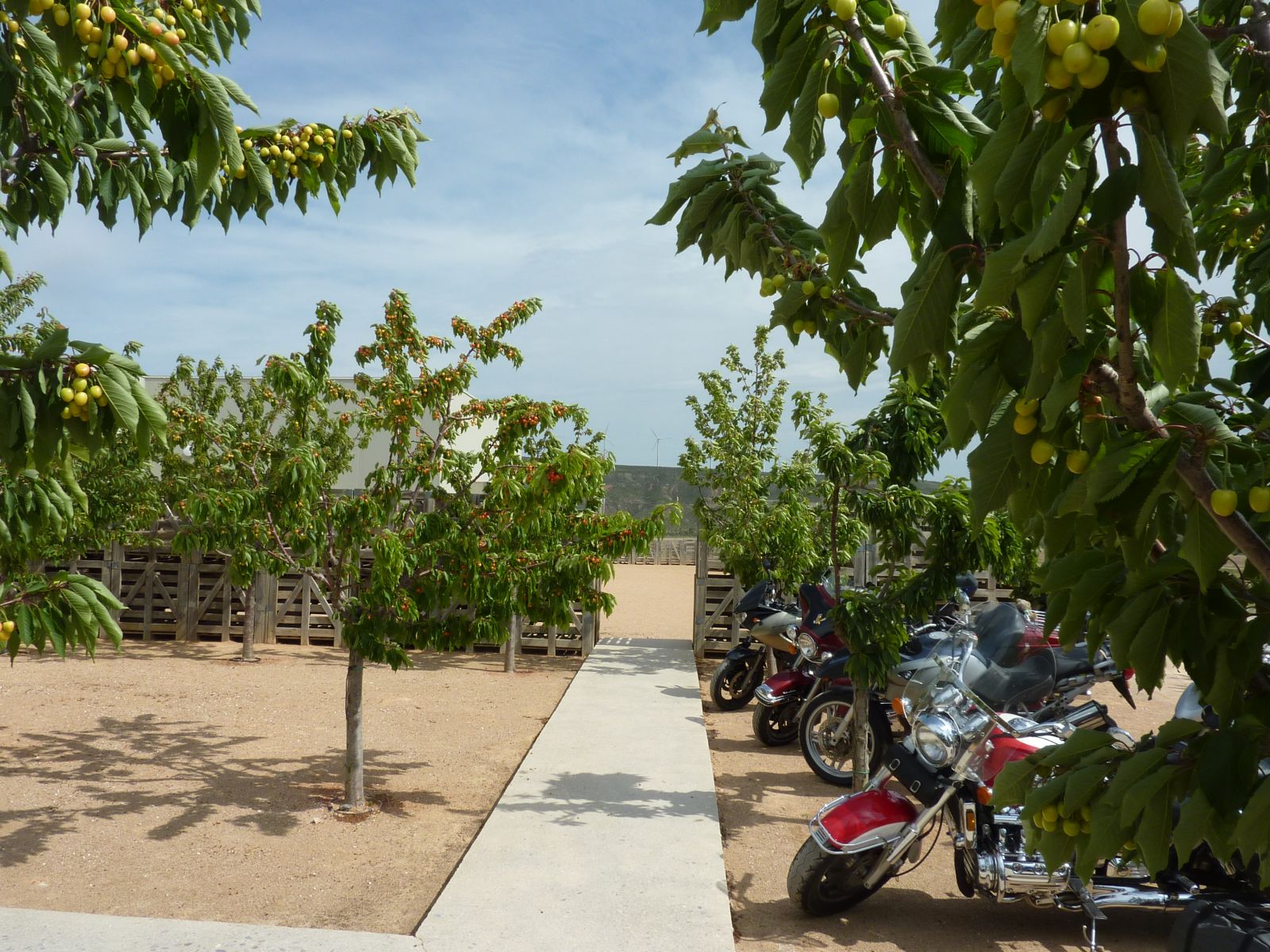 So stellten wir unsere Maschinen am Strassenrand ab, genossen die Aussicht und unser Essen. Edith wurde langsam nervös, denn die Tankanzeige an ihrem Töff zeigte bedenklich gegen null und von einer Tankstelle war weit und breit nichts in Sicht. Wir fuhren also weiter bis Ejea de los Caballeros und auch Edith kam mit dem letzten Tropfen da an der Tanke an. Nachdem wir unsere Bikes frisch getränkt hatten gönnten wir uns auch noch was, bevor wir bei Tudela unser heutiges Hotel 'Aire de Bardena' erreichten.