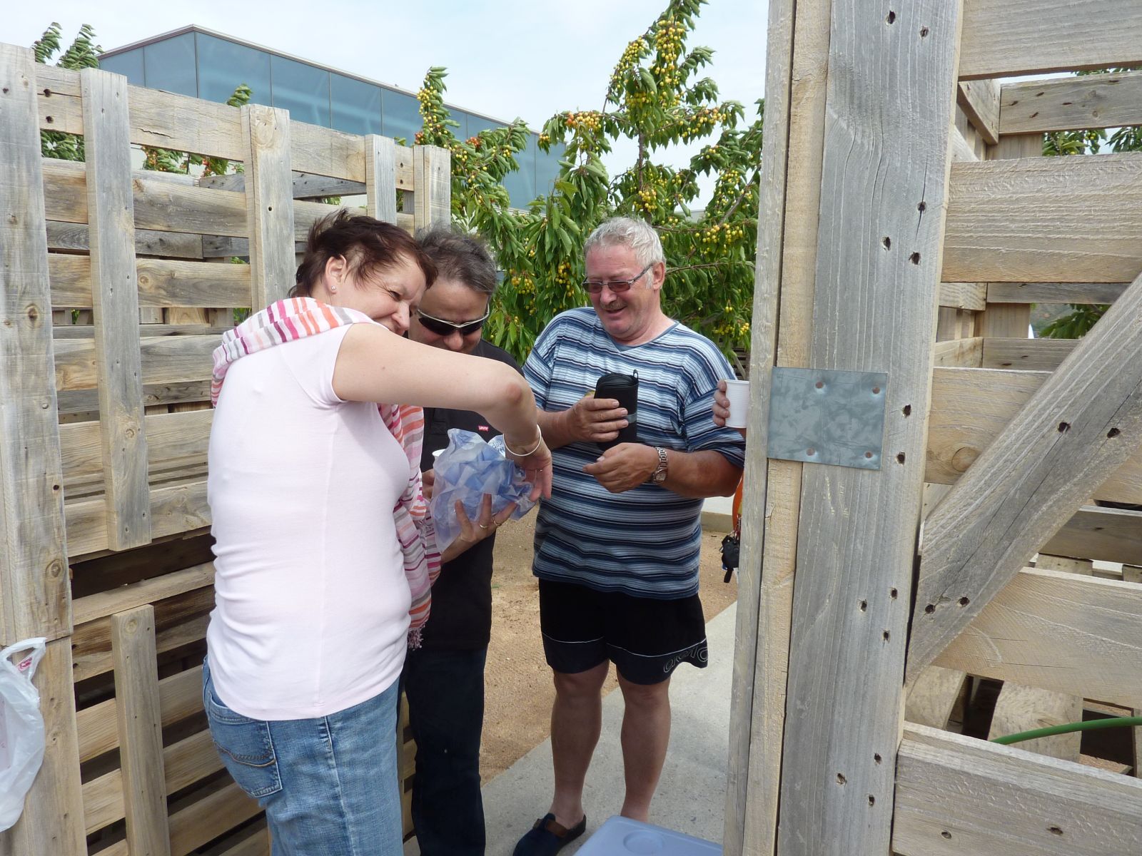 Das Hotel liegt etwas ausserhalb von Tuleda und ist doch recht speziell. Die ganzen Gebäude bestehen aus Kuben und umrahmt ist die Anlage mit Paletten. Jedes Zimmer hat einen eigenen Garten mit übergrosser Taubentränke, wo man sich drin abduschen könnte.