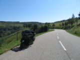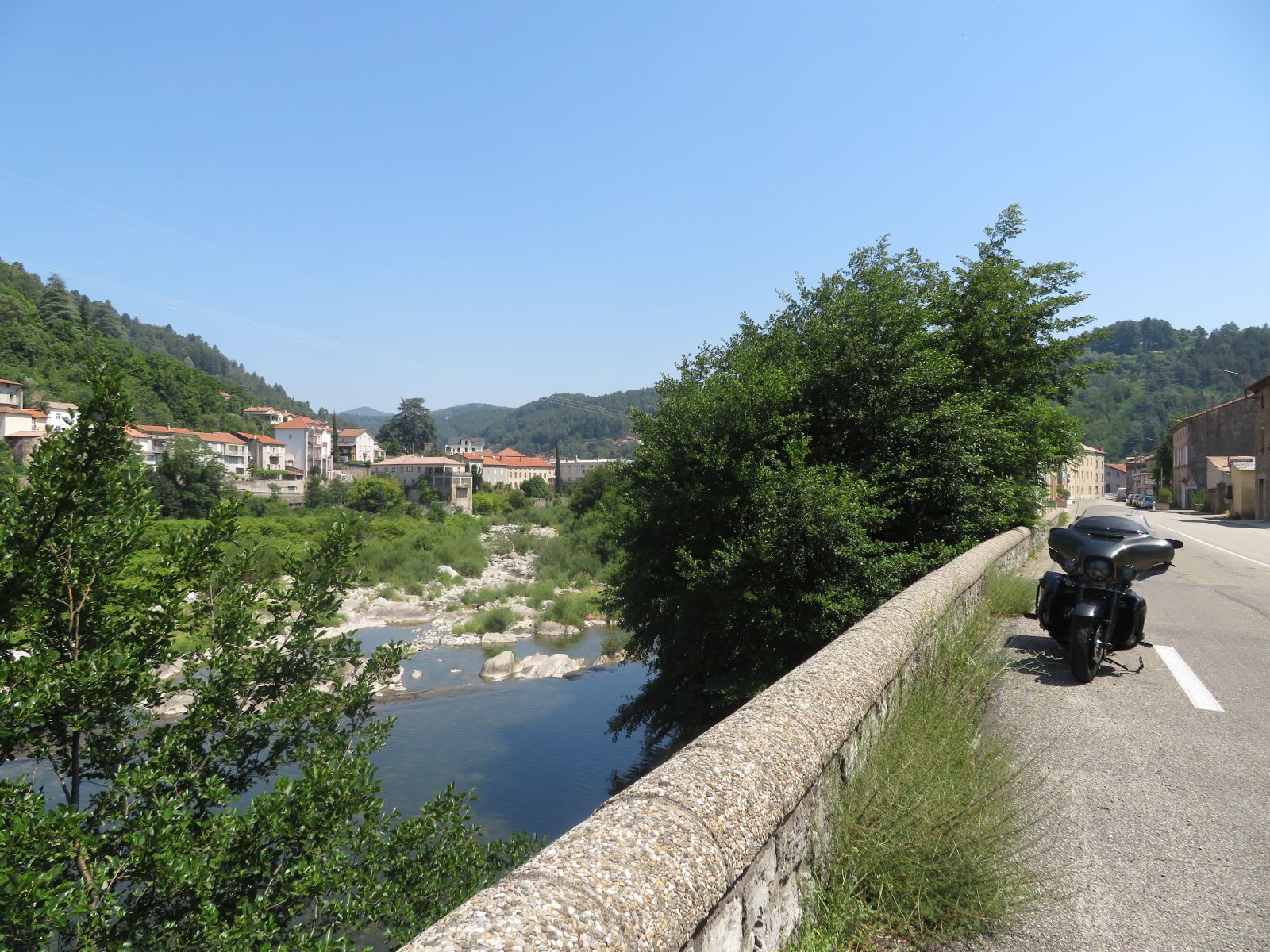 So fuhr ich erstmal westwärts in die Hügel und Pässe der Ardeche hinein und fand da schöne einsame kurvige Strassen. Doch es wurde immer heisser und heisser, so dass ich mich bei Aubenas entschied auf eine witere Runde über noch 6 Pässe zu verzichten und direkt in Hotel Belvedere in der Ardechschlucht fuhr.